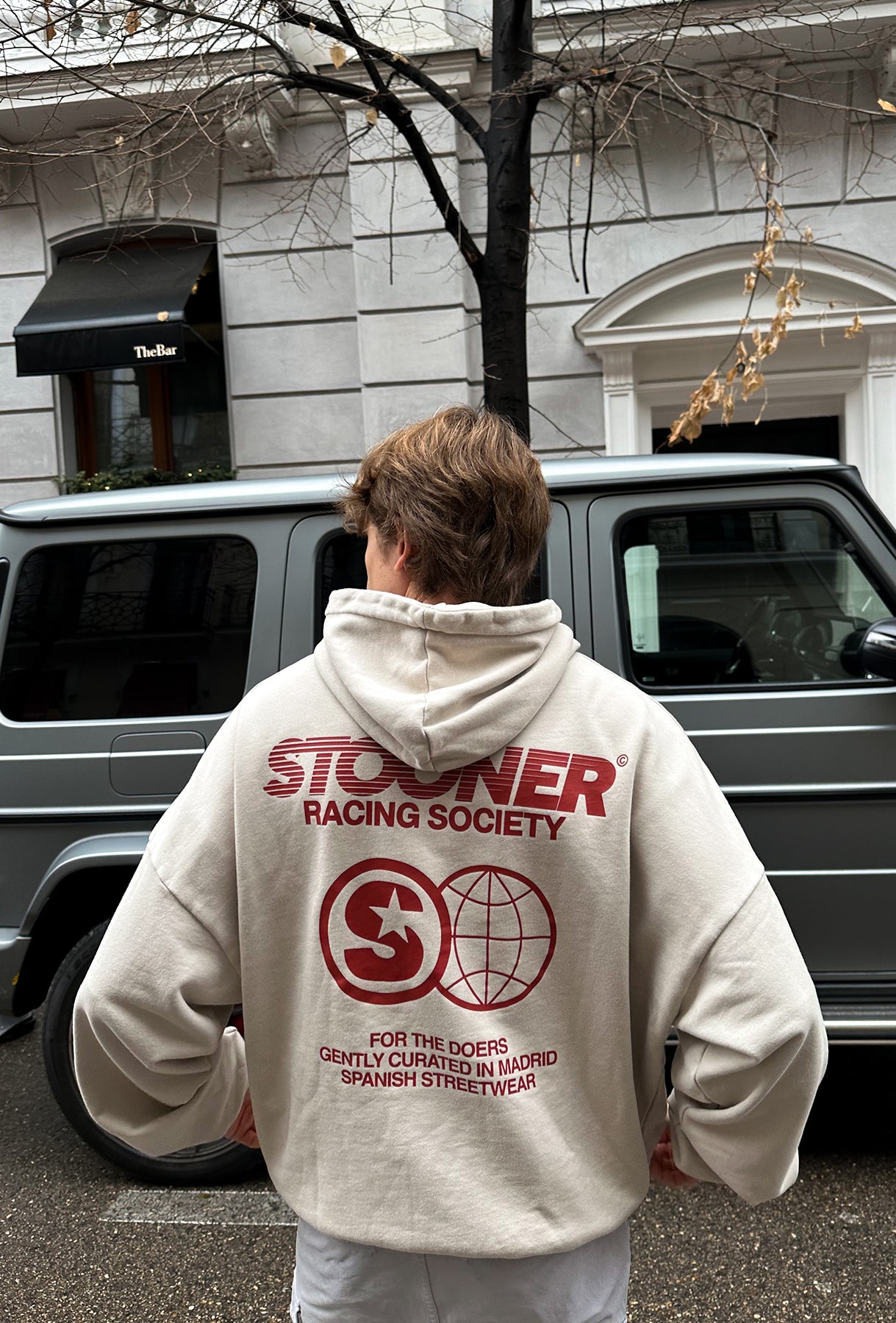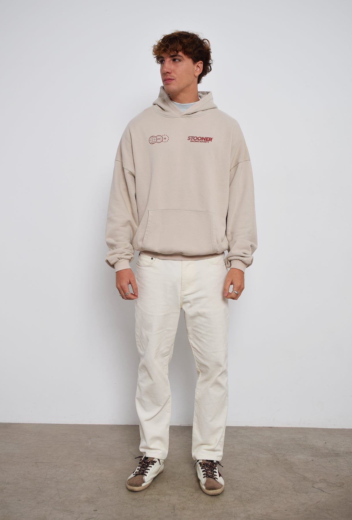 Sudadera CRUDE HOODIE, estampado con color blanco.